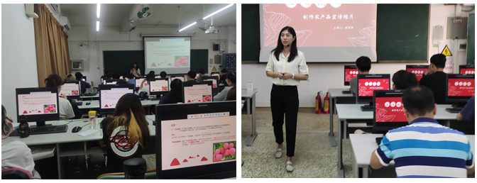 林梦茹老师的《自媒体技术应用》公开课,以“农产品-从化荔枝”为主题,制作助农互动视频,让学生在视频制作中深入了解该农产品的文化背景和助农的意义。评课环节,大家表示教师的教学工具丰富,如问卷调查、超星学习平台,精心准备课件,课堂管理到位。