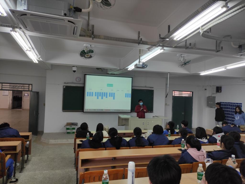 参观校园结束后,广州市黄埔职业技术学校参赛师生团队来到我校电子商务专业技能大赛的集训场地信工财经楼521课室,两校参赛师生团队对比赛细节进行深入的交流。其余的师生们来到信工财经楼2220多媒体教室,电子商务教研室主任谢金荣为同学们做了电子商务专业宣讲,介绍了学校的基本情况、电子商务专业的实训条件、技能大赛、课程体系、学生就业、三二分段录取要求等内容,详细解答了同学们的相关提问。之后,信息工程学院团委书记梁土权介绍了学院团委学生会的相关活动情况,勉励同学们参与到丰富多彩的校园生活,丰富课余生活,提升自己的综合素质。