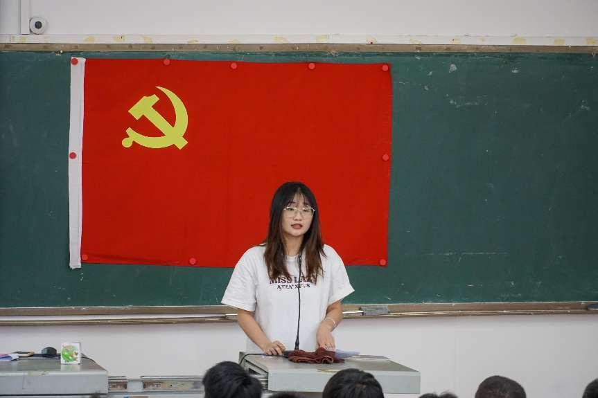 毕业生党员梁秋婷、潘艺明分别上台分享了自身的成长故事和入党初心,以及就业和插本的经验体会,他们对母校三年的培养和教育表示衷心感谢,并结合自身经验给师弟师妹们提出了就业和插本的建议,充分彰显了党员的先锋模范作用。