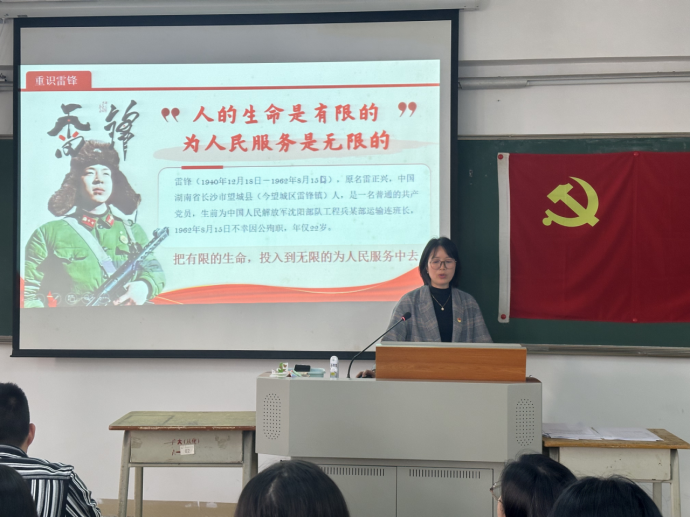 活动伊始,支部书记苏碧玲带领全体人员进行了“雷锋精神”的专题学习。她结合雷锋同志的生平事迹与新时代楷模的故事,重识雷锋、时代之问、身边光辉、青年践行”四个方面,深刻阐释了雷锋精神的时代内涵与现实意义。苏碧玲强调,作为新时代的大学生党员,要深刻把握雷锋精神的时代内涵和实践要求,将崇高理想信念和道德品质追求转化为具体行动,融入日常学习、工作和生活,努力成为中国式现代化建设的先锋力量。