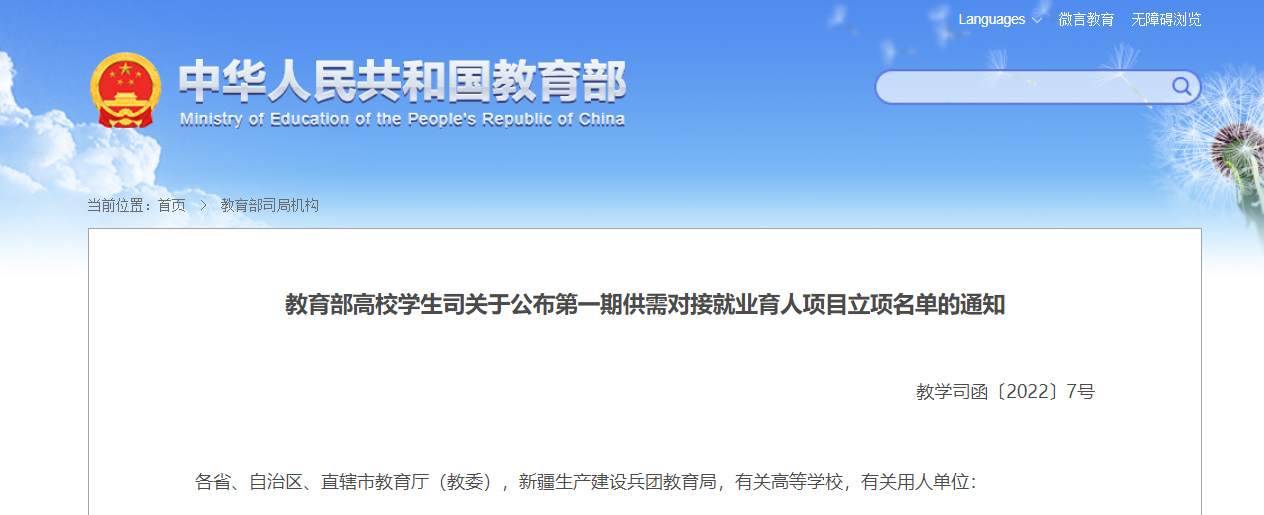 3.网络专业获得教育部高校学生司2021年供需对接就业育人项目立项。