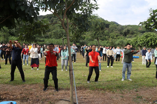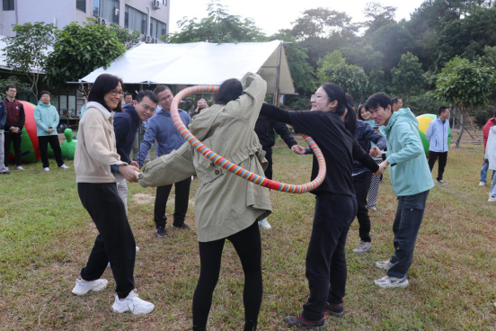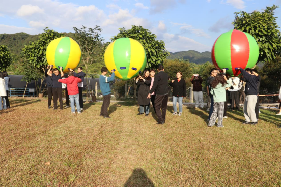 紧接着,登山和拓展环节正式拉开帷幕。在专业教练的带领下,大家分组进行了一系列富有挑战性的拓展项目。这些项目不仅考验了每个人的身体素质和团队协作能力,更让大家在轻松愉快的氛围中增进了彼此的了解和信任。队伍在草坪上进行了传呼啦圈、运转乾坤、毛毛虫接力游戏等拓展项目。在拓展项目中,大家互相配合,默契十足。每当有人遇到困难,总有人及时伸出援手,共同解决问题。这种互帮互助的精神,不仅让大家更加团结,也让活动变得更加有趣。