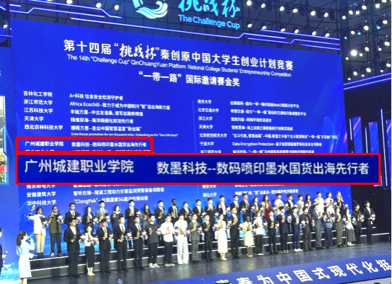 据悉,本届赛事由共青团中央、教育部、人力资源社会保障部、中国科协、全国学联、陕西省人民政府共同主办,西安交通大学承办,共吸引了来自2700余所高校的300多万名学生参与,提交了39万余个创新创业项目。经过严格的校级初赛和省级复赛筛选,仅有来自412所国内高校和14所国际高校的839个项目脱颖而出,进入全国决赛终评。在如此激烈的竞争中,我院《数墨科技》项目作为其中的佼佼者斩获金奖!广东省在本次竞赛中共获得金奖11个(其中高职3个)、银奖23个(其中高职5个)、铜奖62个。