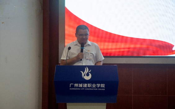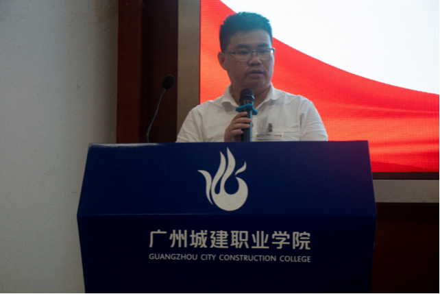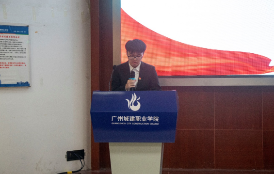 第七届学生会主席团成员陈世卫从“工作回顾”、“工作反思”、“展望未来”三部分作《广州城建职业学院信息工程学院第七届学生会工作报告》。