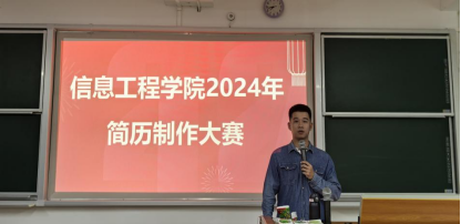 11月5日晚,我院2024年简历制作大赛决赛,在信工财经楼520课室顺利举行。晋级决赛选手、23级各班级学生代表等参加,学院学工办陈俊均、梁嘉玲、曾环湧、徐颖颖和陈伟锋等老师出席并担任决赛评委。