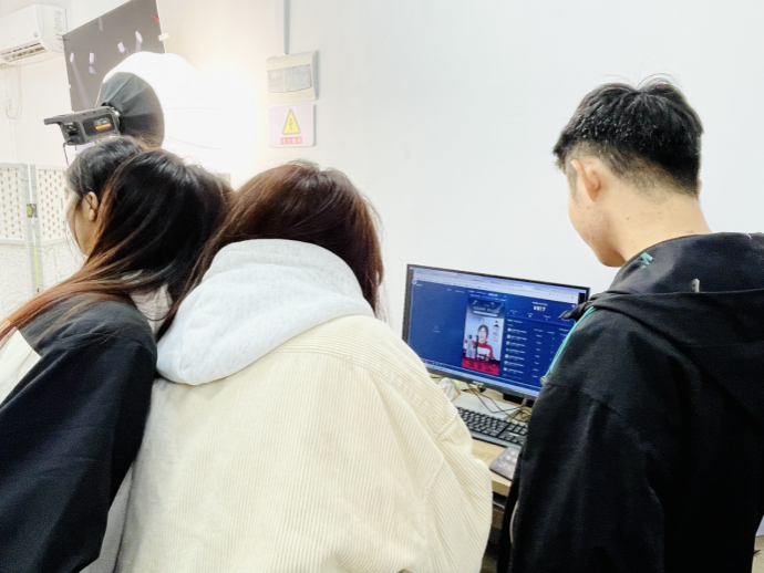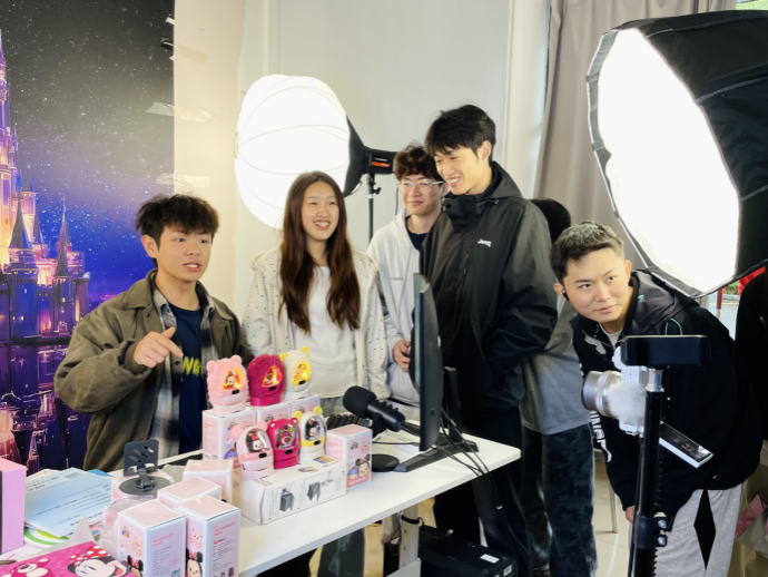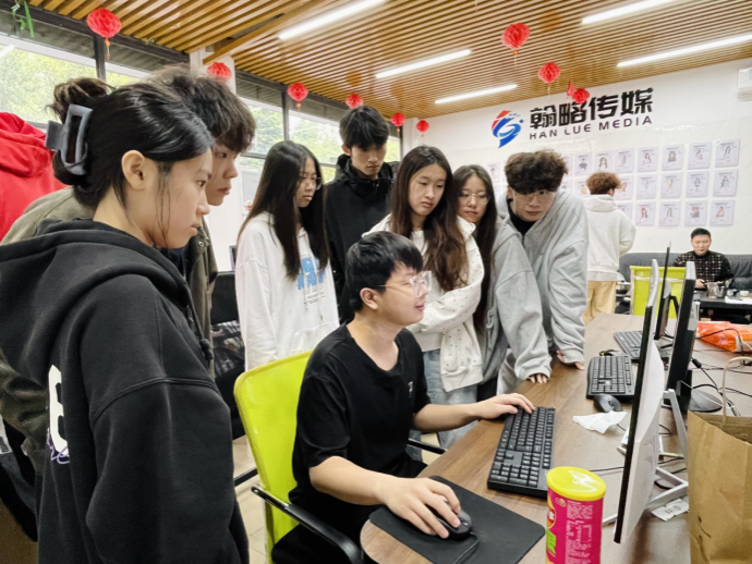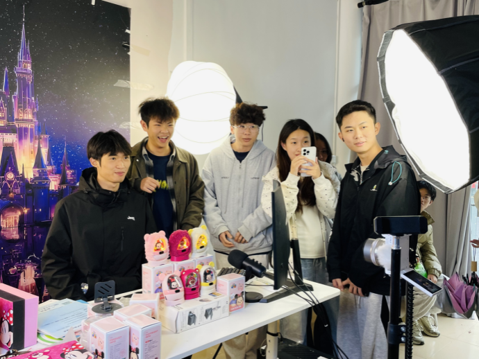 下午的训练营转入实战体验阶段。在企业校内基地责人庄凯鹏的带领与指导下,同学们走进翰略在校内搭建的实训基地,先后参观了电商直播实景间、短视频剪辑工作区以及AI生图技术应用场景。企业讲师现场演示了直播流程、视频素材制作与智能工具使用,让同学们直观感受到行业一线的工作场景与技术运用。随后,同学们亲自走进直播间,在指导下体验直播带货环节,从话术练习到现场互动,真实感受“主播”角色的工作内容与挑战。