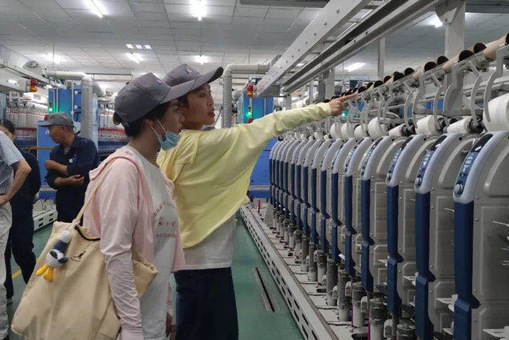 东华大学“一带一路”全国大学生纺织援疆团调研纺织企业生产车间