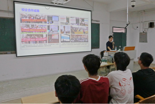分享会伊始,陈凯枫首先为同学们系统介绍了广州天懋信息系统股份有限公司。作为国内专网安全领域的领军企业,天懋信息深耕软件开发与网络安全两大核心领域,凭借技术实力与行业经验树立了标杆形象。他提到,天懋信息与广州城建职业学院已建立近十年稳定的校企合作关系,双方在技能竞赛指导、应用型人才联合培养、实习就业等方面携手深耕,累计产出了众多亮眼成果,为现场新生搭建起“企业真实场景”与“校园专业学习”的初步认知桥梁。