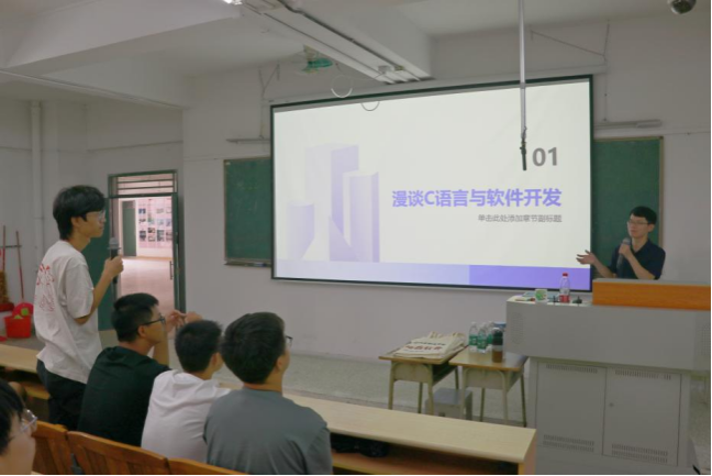 分享会的尾声,陈凯枫主动抛出行业发展与专业学习相关的关键问题,如“AI对软件开发有什么影响”“同学们对C语言与软件开发有多少了解”等,巧妙激发同学们的思考热情。现场氛围瞬间升温,同学们纷纷结合自身困惑踊跃提问,问题覆盖全面且贴合需求。陈凯枫耐心倾听每一个疑问,结合行业背景与企业案例进行细致解答,不仅帮助同学们厘清了对行业现状的认知,更让不少同学在答疑中找到了属于自己的职业方向,真正实现了“带着疑问来,满载收获归”。