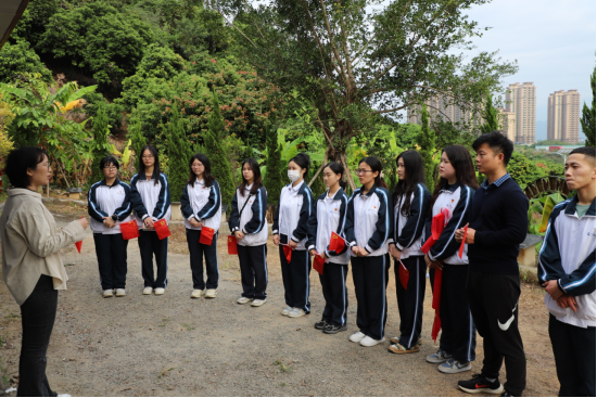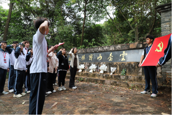 在云台山战场遗址前,全体人员默哀致敬三分钟,向先烈们表达敬意和怀念之情。随后,大家集体学习碑文上记载的战斗历史,重温解放广州的最后一场战役——“从化云台山之战”。