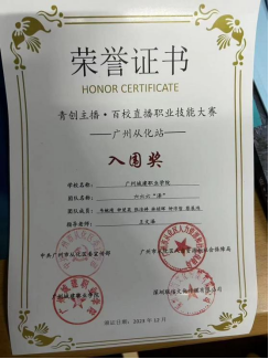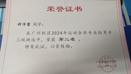 他主动参与各类竞赛,在竞赛中不断提升自身的能力,并获得了2024年中国国际大学生创新大赛国赛入围奖,第十四届“挑战杯”广东大学生创业计划竞赛金奖,中国国际大学生创新大赛(2024)广东省分赛银奖,青创主播·百校直播职业技能大赛广州从化站入围奖,校运会男子非专业组三级跳第二名以及男子两百米第四名。