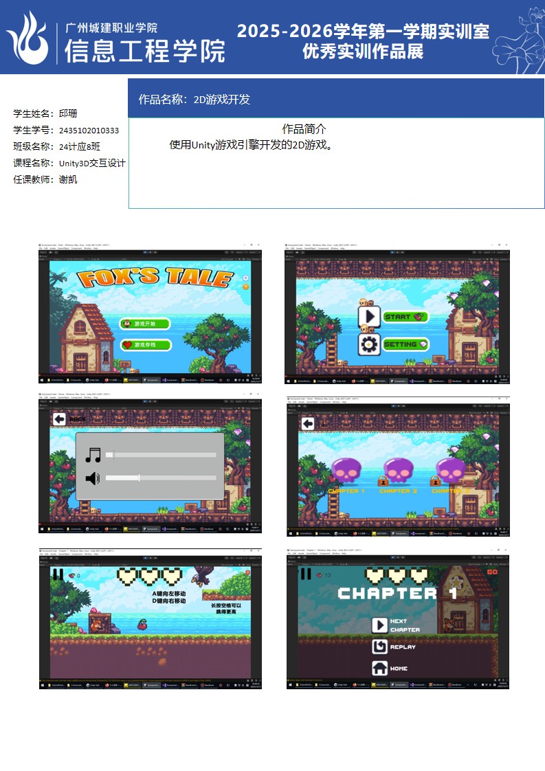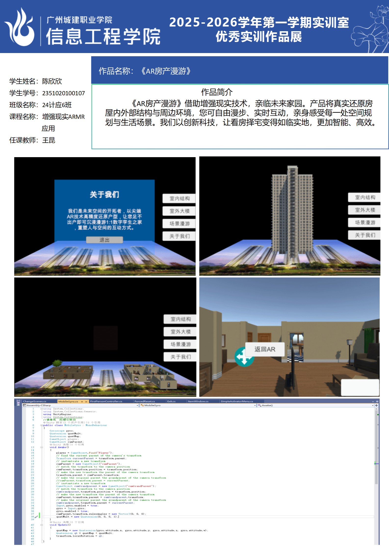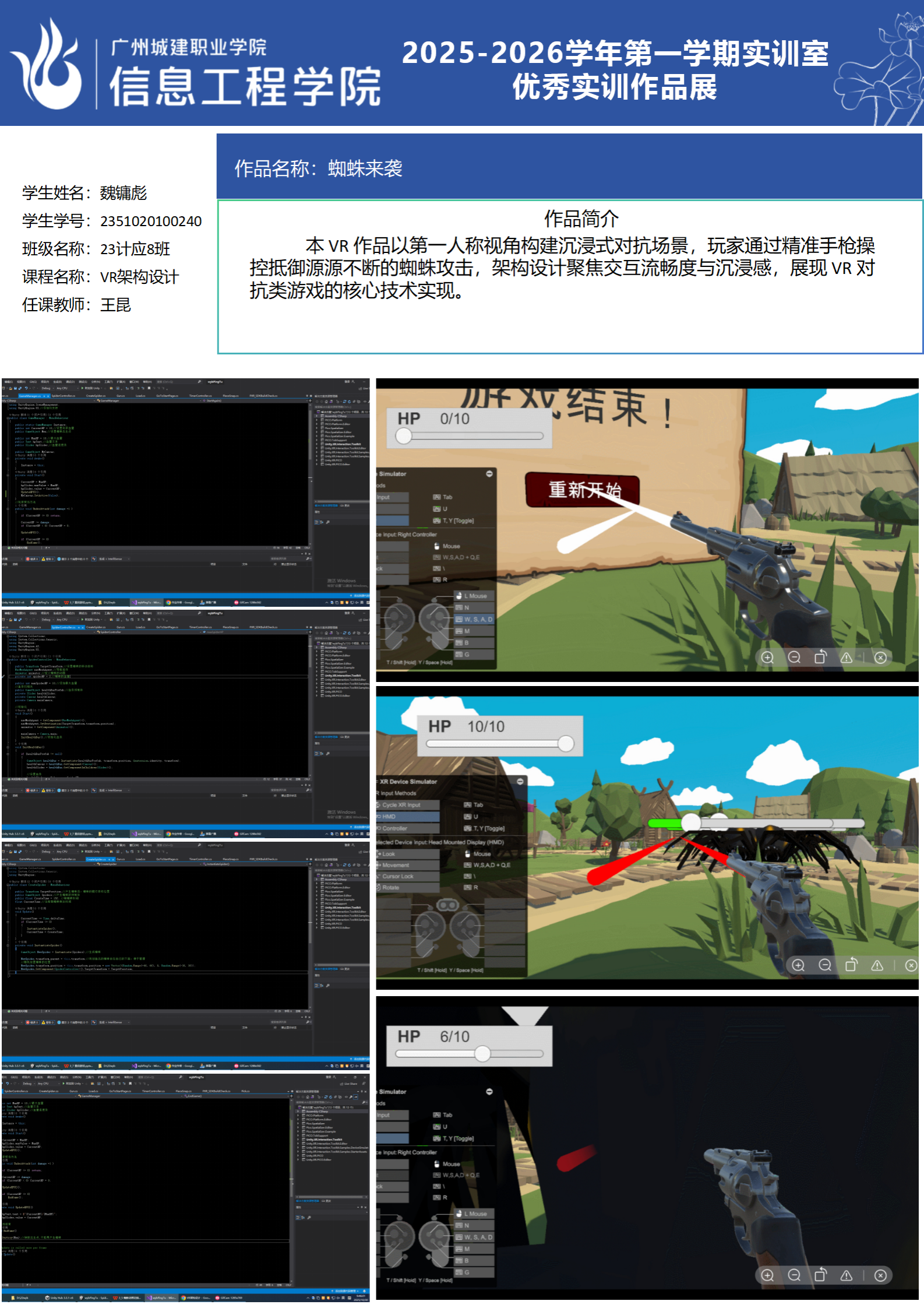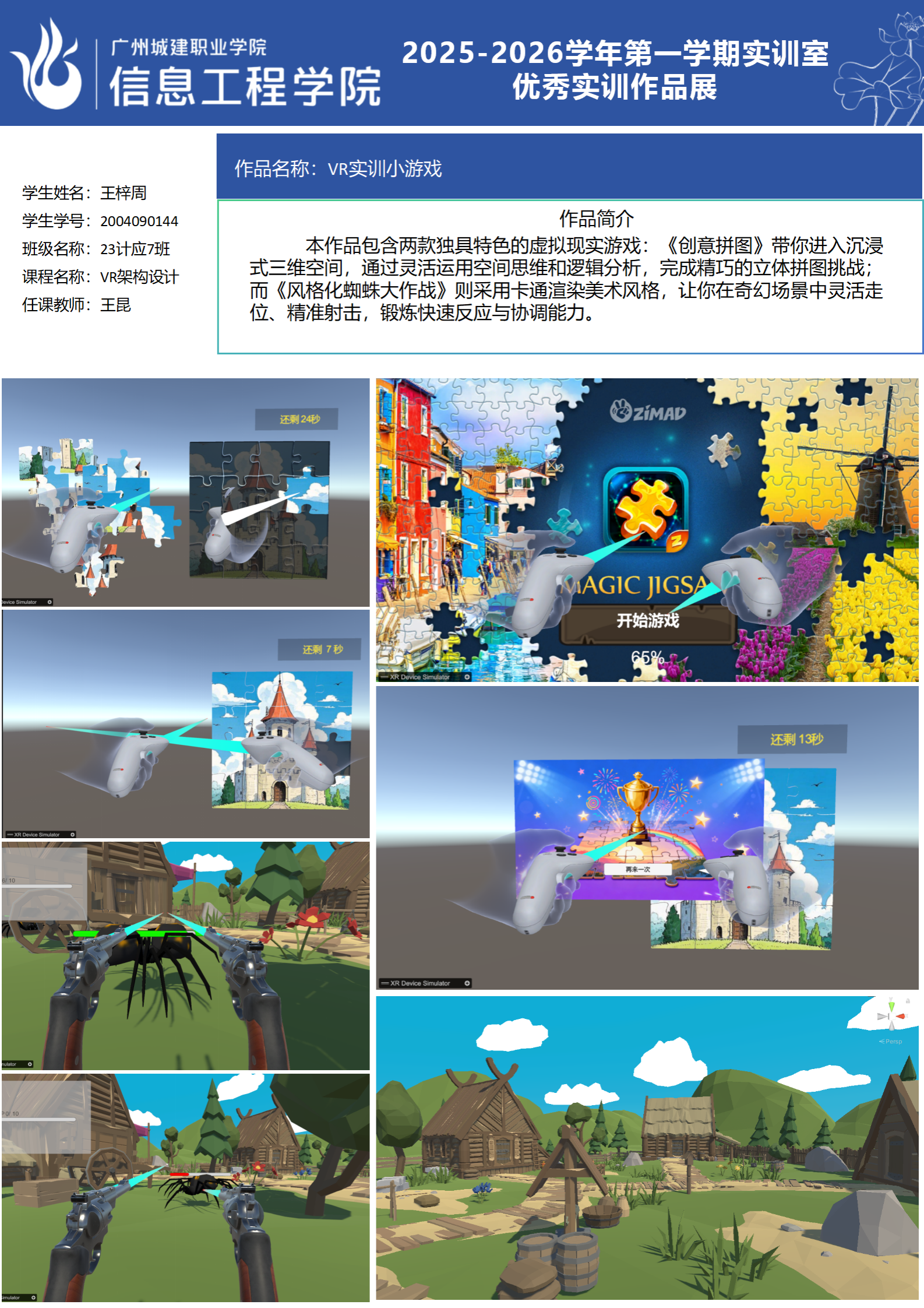 信息工程学院2025-2026学年第一学期实训室优秀实训作品展(2406 虚拟现实技术实训室)
