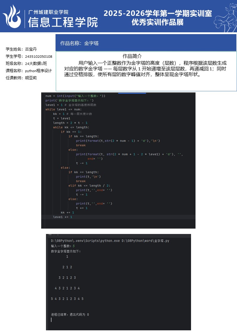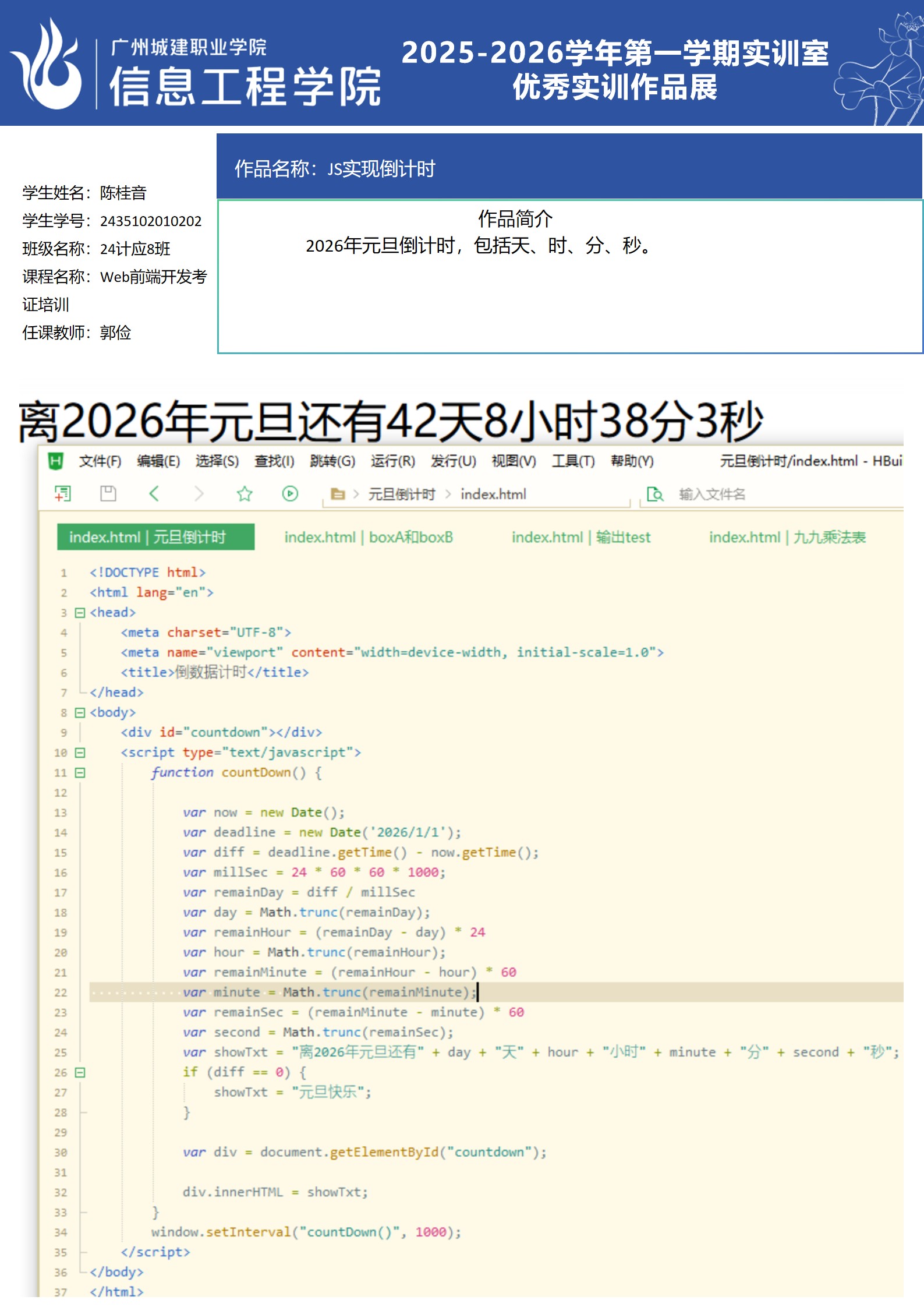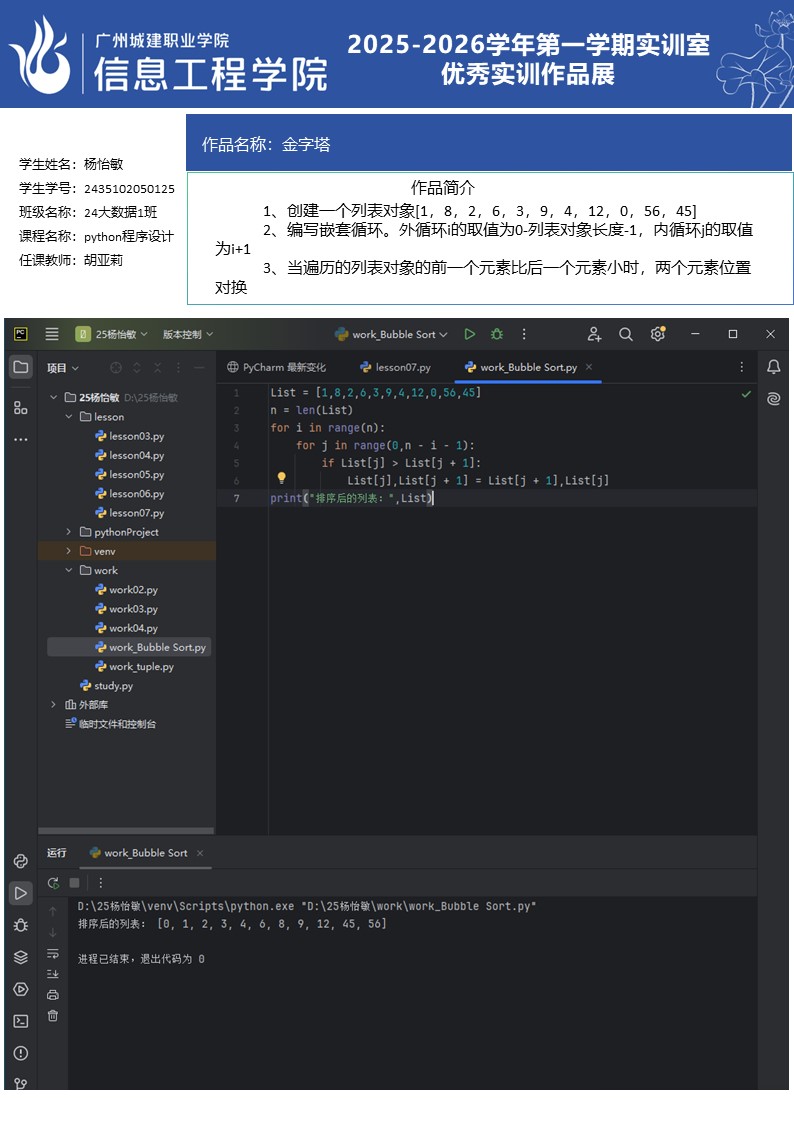 上一篇:信息工程学院2025-2026学年第一学期实训室优秀实训作品展(2410 数字媒体实训室)