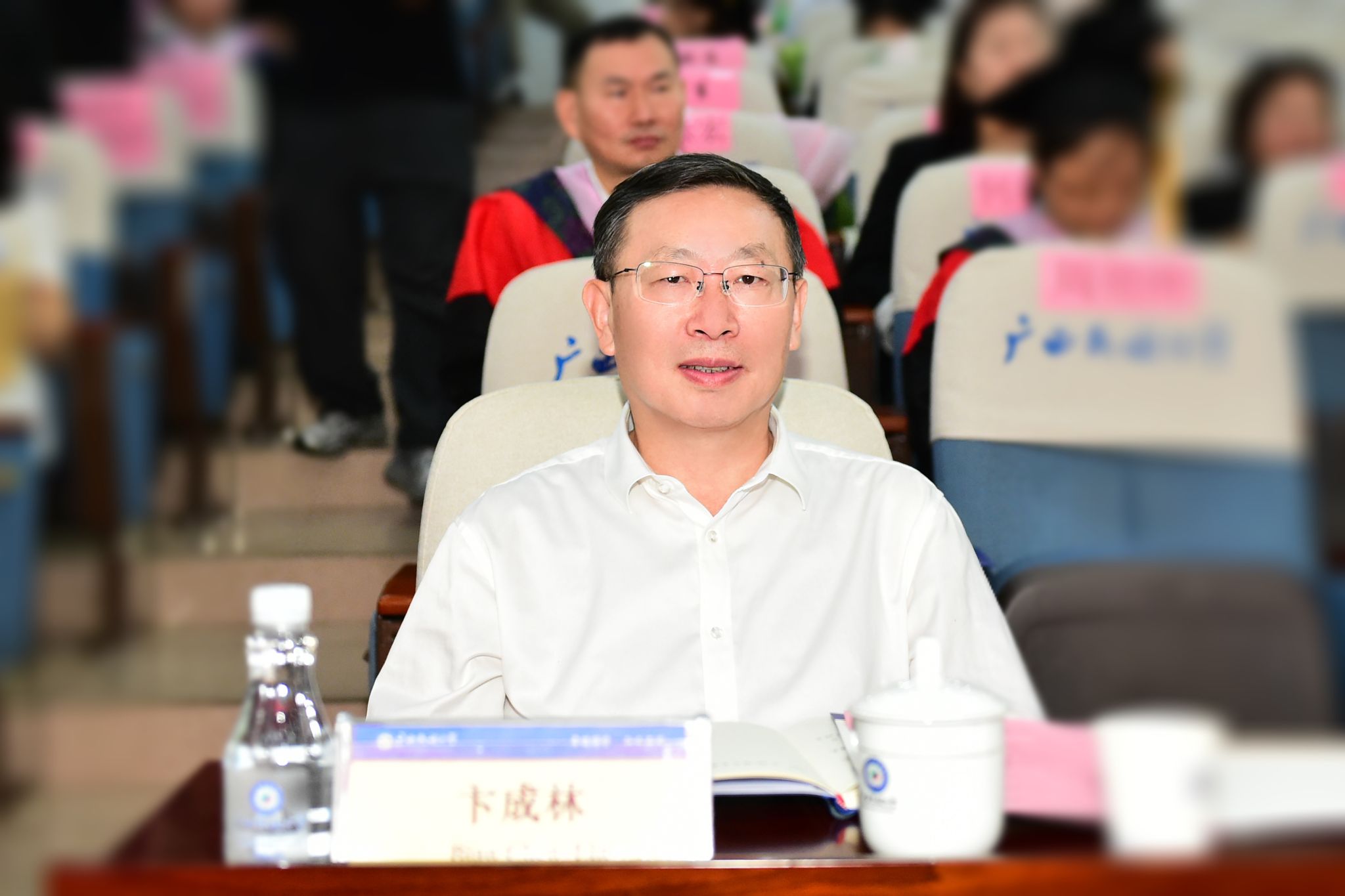 卞成林向毕业生赠送纪念礼物。全体师生齐唱广西民族大学校歌《理想放飞相思湖》,毕业生代表齐唱歌曲《再见》,动人的歌声中饱含着对毕业生的美好祝愿、殷切期望以及师生间的惜别之情。