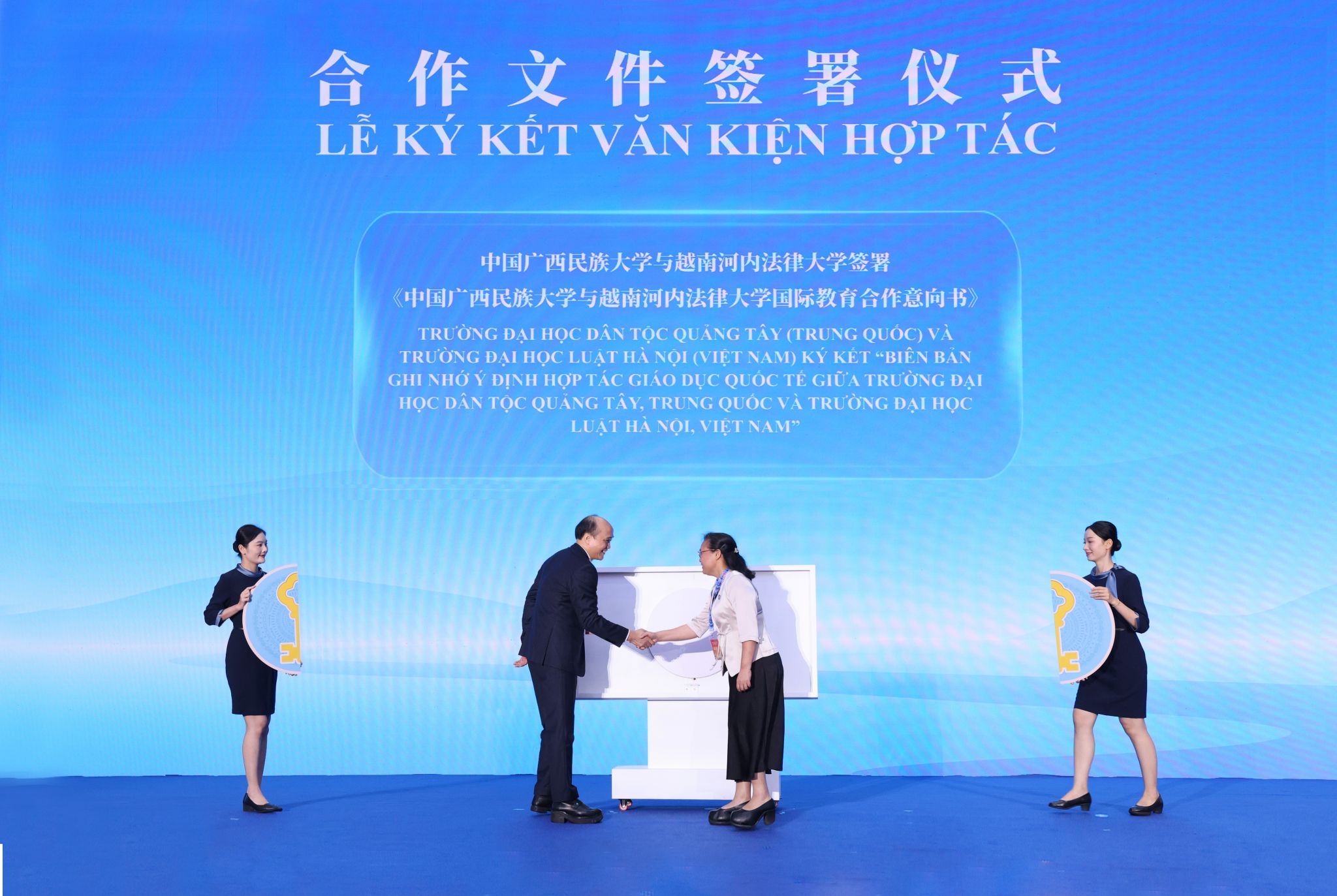 广西民族大学校长韦仕珍出席会晤活动,并与越南河内法律大学签署《中国广西民族大学与越南河内法律大学国际教育合作意向书》。根据协议,双方将在师生交流交换、联合研究与教学活动、短期研修项目等领域展开合作,共同探索中越两国法学教育合作新模式,促进两校法学人才培养与学术交流迈向新台阶。