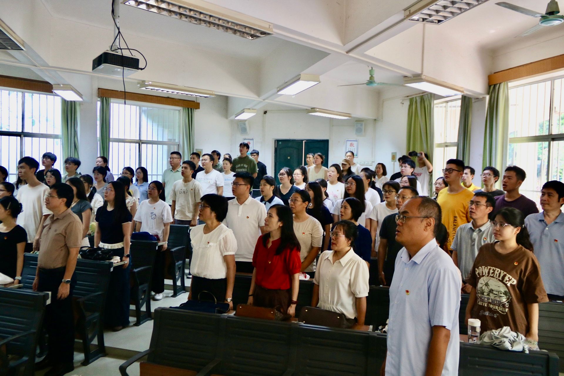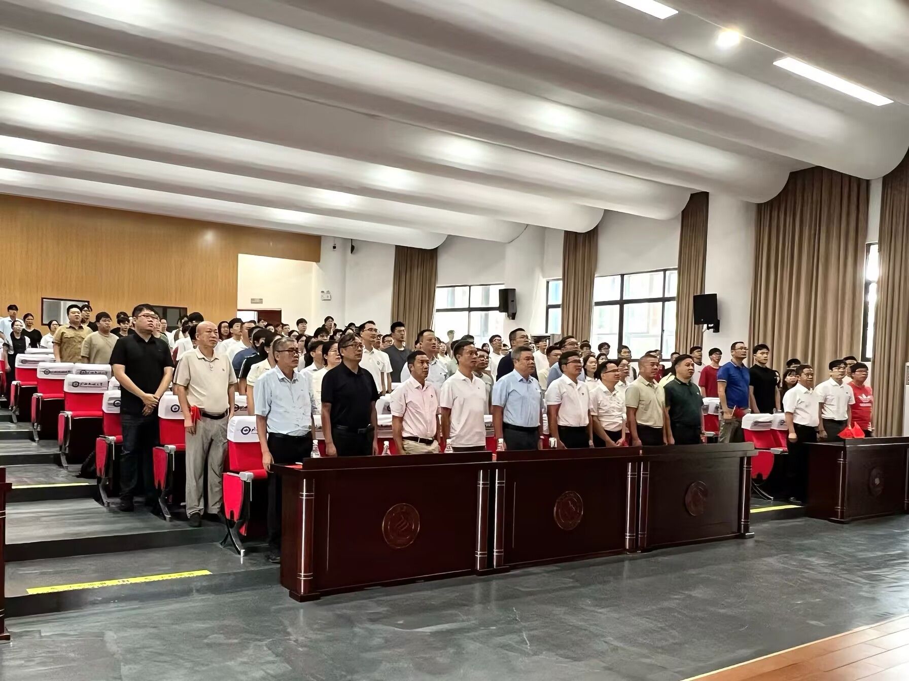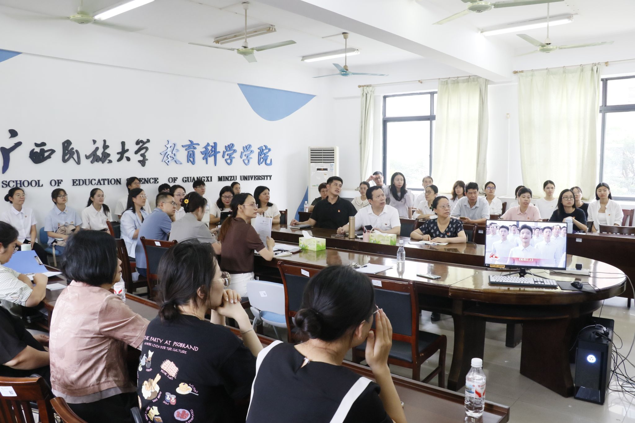 9月3日,纪念中国人民抗日战争暨世界反法西斯战争胜利80周年大会在北京天安门广场隆重举行,中共中央总书记、国家主席、中央军委主席习近平发表重要讲话并检阅受阅部队。广西民族大学师生怀着热切的心情相聚在报告厅、会议室、体育馆等地,以各种形式积极收看大会直播,认真学习习近平总书记重要讲话精神。