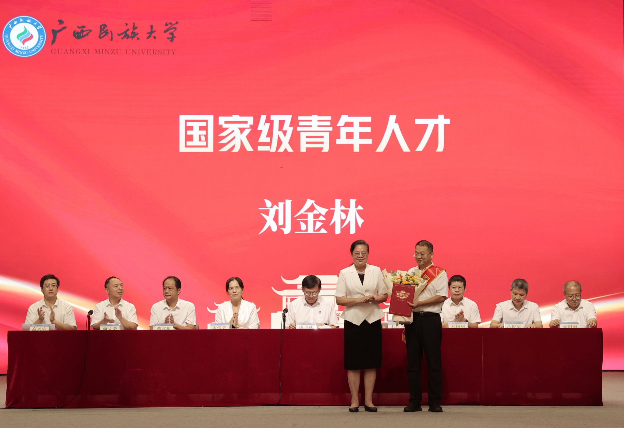 校长韦仕珍为刘金林教授颁奖