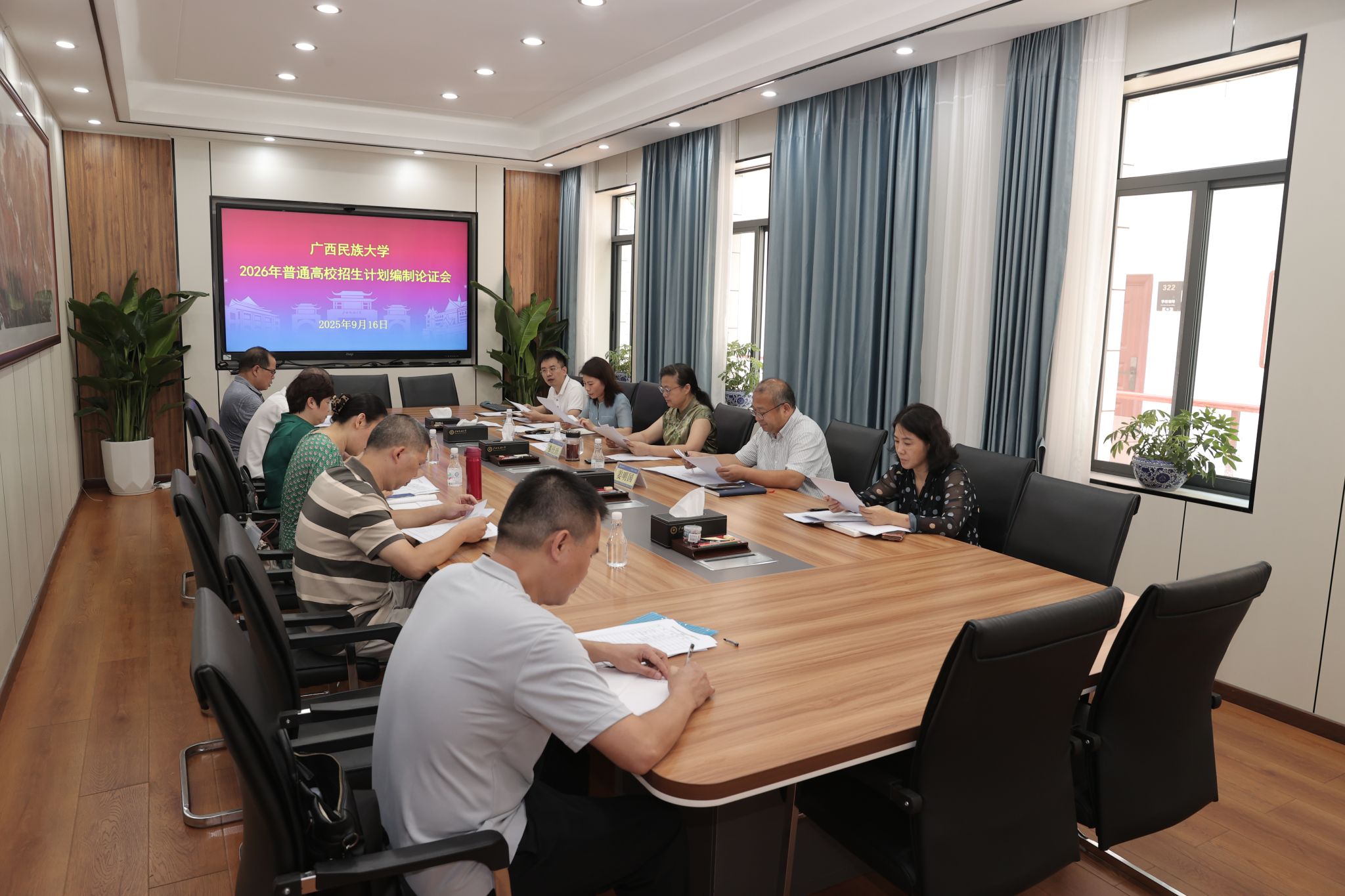 【大学生通讯社报道】9月16日下午,广西民族大学在办公楼302会议室召开2026年普通高等教育招生计划编制论证会。校长韦仕珍出席会议并讲话,副校长姜明国主持。