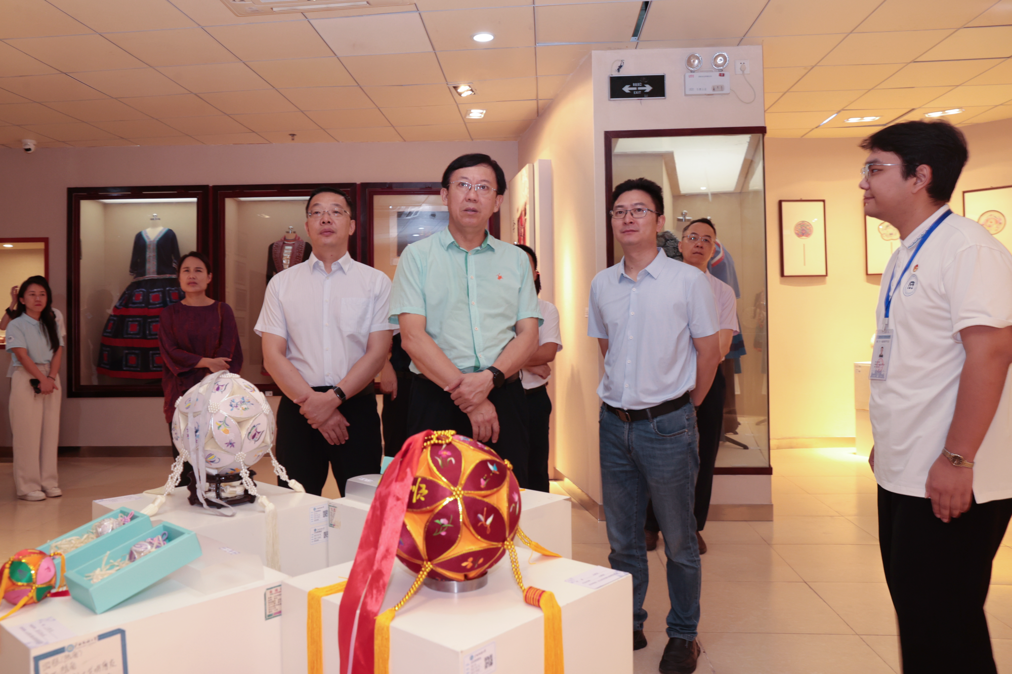 【大学生通讯社报道】9月28日上午,广西民族大学在国际教育综合楼民族博物馆举行广西民族大学非物质文化遗产展示馆揭牌仪式暨中国非物质文化遗产传承人研修培训计划——广西民族大学十年成果展。校党委书记唐平秋出席揭牌仪式,学校党委办公室、校长办公室等有关职能部门负责同志及民族学与社会学学院教师代表共同参加揭牌仪式。唐平秋表示,学校始终将非物质文化遗产保护与传承作为重要使命,坚持系统谋划、高位推进,着力构建实践探索与理论总结相结合的工作格局,以培训成果赋能文化振兴,不断强化非遗技艺在促进地方经济发展与民族团结中的积极作用。学校将继续深化非遗传承体系建设,重点提升茶文化、服饰文化等特色方向的育人成效与社会服务能力,力争在广西非遗保护与创新发展中发挥更大作用,为构筑中华民族共有精神家园持续贡献“民大智慧”与“民大力量”。