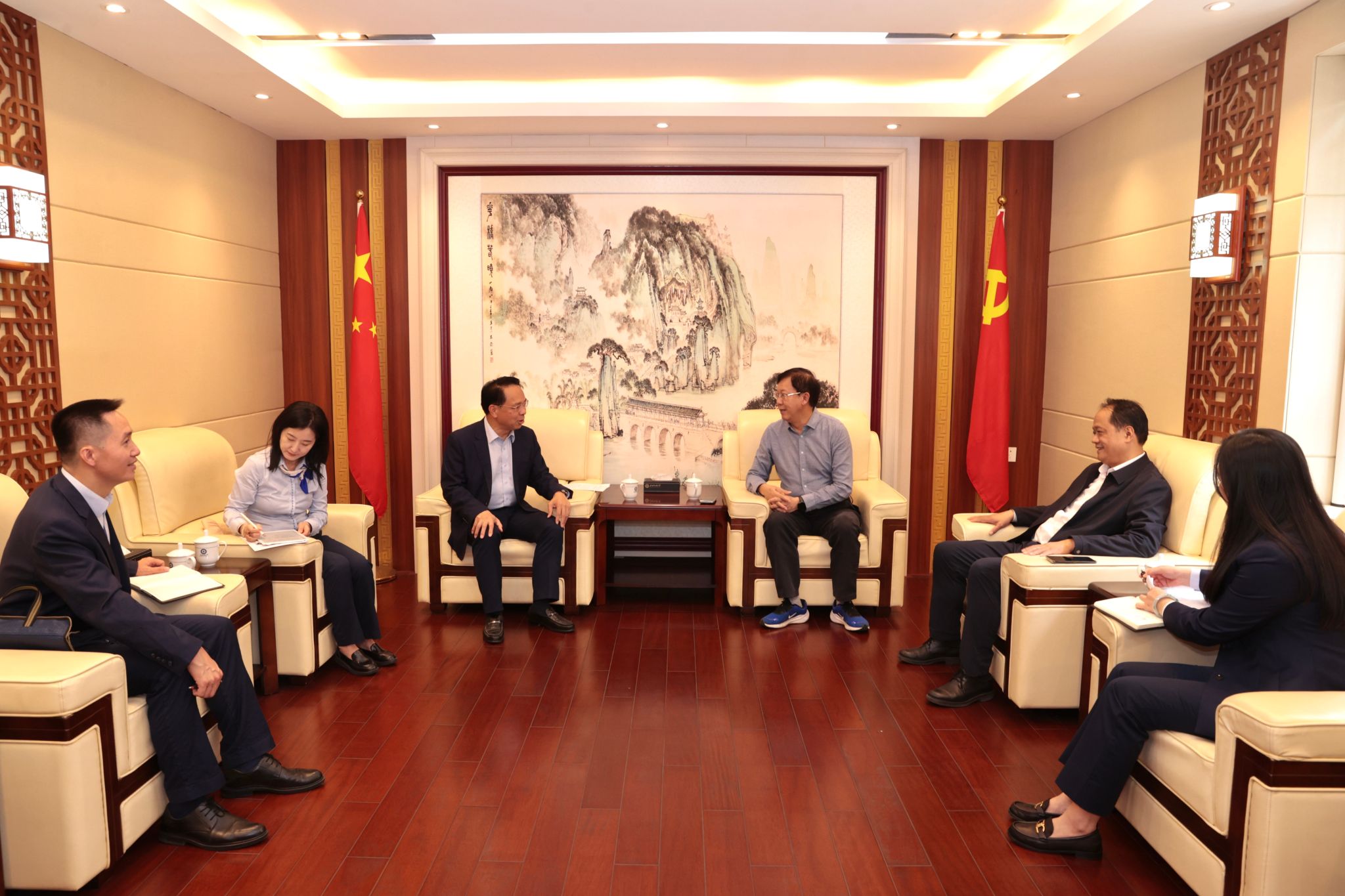 蔡高根对北部湾银行一直以来对学校发展的关心和支持表示感谢,并介绍了学校干部教育培训及同等学力人员申请硕士学位项目开展情况。希望未来持续深化银校合作,推进同等学力人员申请硕士学位项目落实,赋能“三型银行”建设。