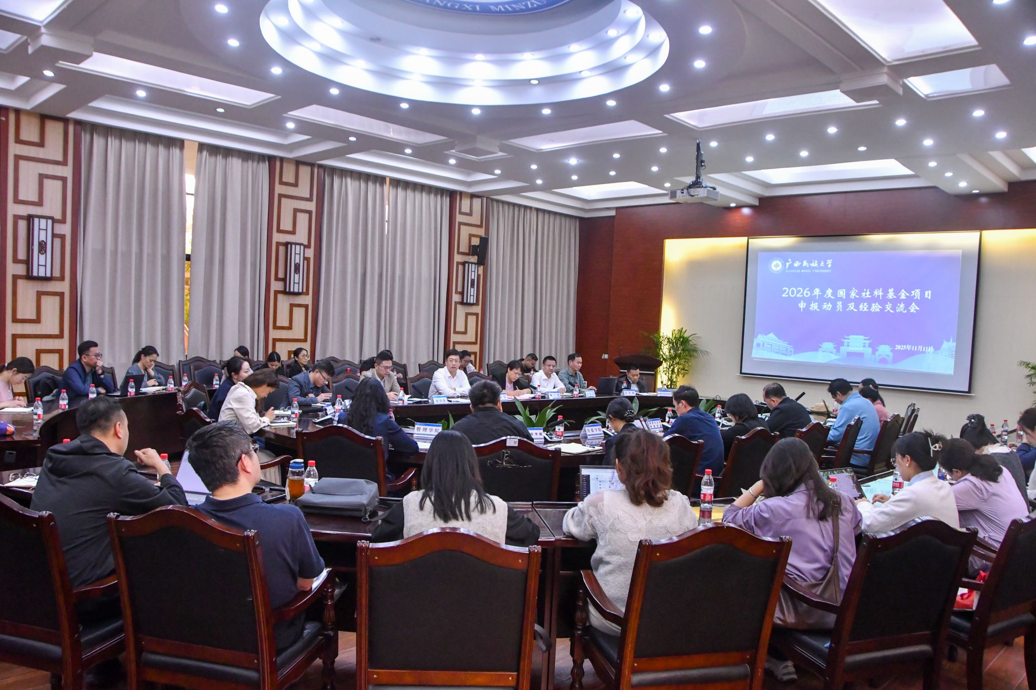 11月11日,高兴宇在2026年度国家社科基金项目申报动员及经验交流会上表示,国家社科基金项目是衡量高校科研工作的重要标志,要聚焦党和国家的中心任务,着力服务党和国家的重大战略需求,推进有组织的科研,孵化学术研究共同体,强化学科交叉融合和青年教师培养,谋划系列高级别项目申报,力争在2026年项目申报中实现新突破。(初审/滕兰花 图文/谭莹 编/黎倩雅 复审/韦利坤 终审/孙寿媚)