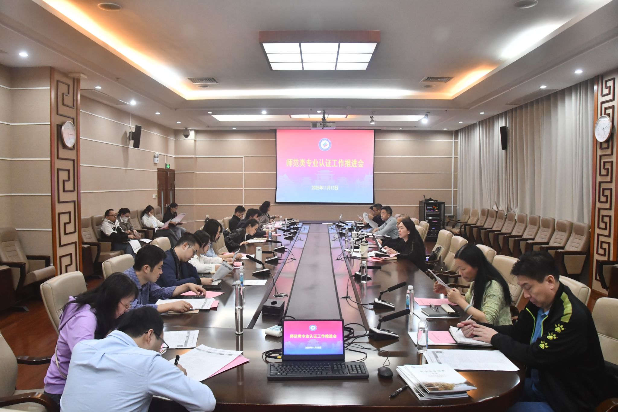 11月13日,姜明国在师范类专业认证工作推进会上表示,各有关单位要明确分工,充分认识师范类认证工作的重要性,提高人才培养质量;对照认证标准,强化专家指导,持续改进补齐短板,充分挖掘专业特色与育人成效;主动配合认证学院做好材料填报和完善,把控时间节点,加强督促和检查,做好师范类专业认证工作。(初审/严军 图/黄孟祥 文/黄孟祥 实习记者:黄贞匀 黄琳倩 樊甲利 编/韦丽娜 复审/韦利坤 终审/孙寿媚)