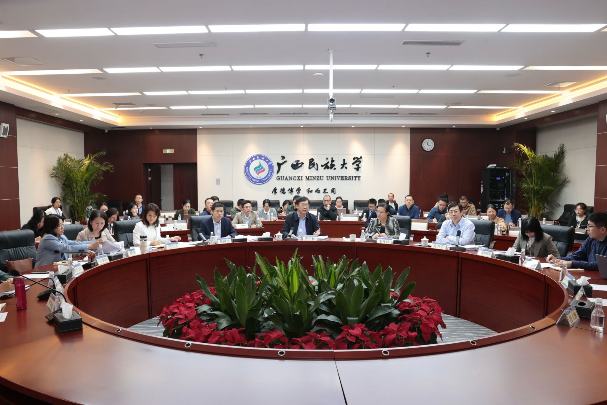 【大学生通讯社报道】11月26日上午,广西民族大学在文化研习基地召开2025年第6次学科建设工作推进会。校党委书记唐平秋,校长韦仕珍,校党委副书记邓国彬出席会议,副校长高兴宇主持会议。学校学科建设领导小组成员及各博士点建设工作专班全体成员参加会议。