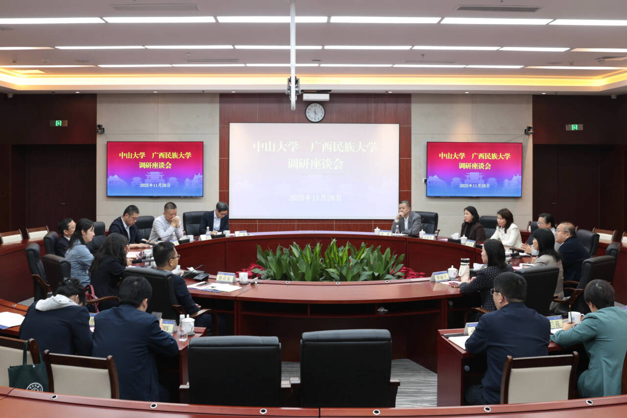 【大学生通讯社报道】11月28日下午,广西民族大学校长韦仕珍会见来校调研的中山大学校长、中国科学院院士高松一行,双方在文化研习基地展开座谈交流并签署对口合作框架协议。党委常委、副校长姜明国陪同会见,有关单位主要负责人参加会见。