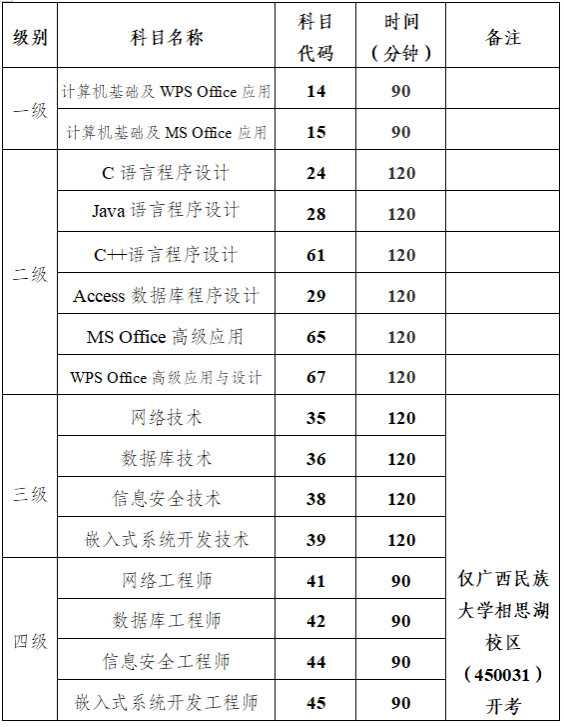 2025年3月全国计算机等级考试将于3月29日-30日举行,广西民族大学相思湖校区(450031)与武鸣校区(450111)均接受社会考生报名。为做好本次报名工作,现就有关事项通知如下: