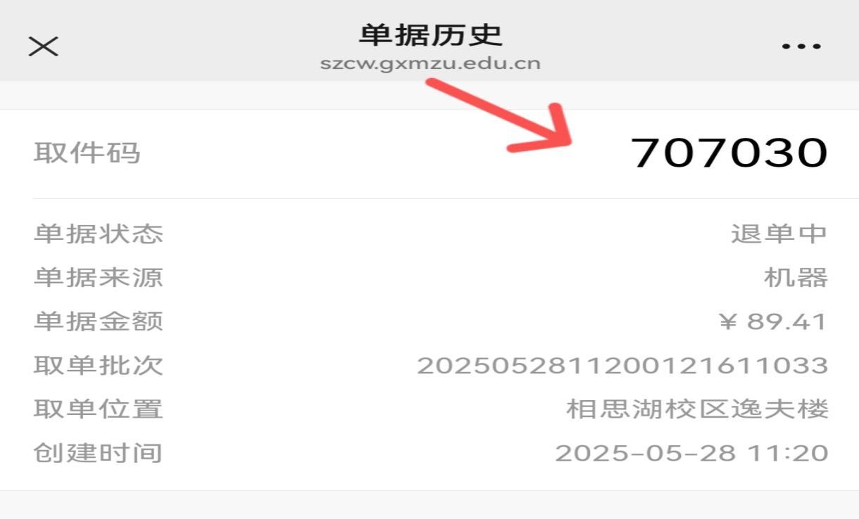 第二步:按推送的退单信息提醒,正确输入取件码。