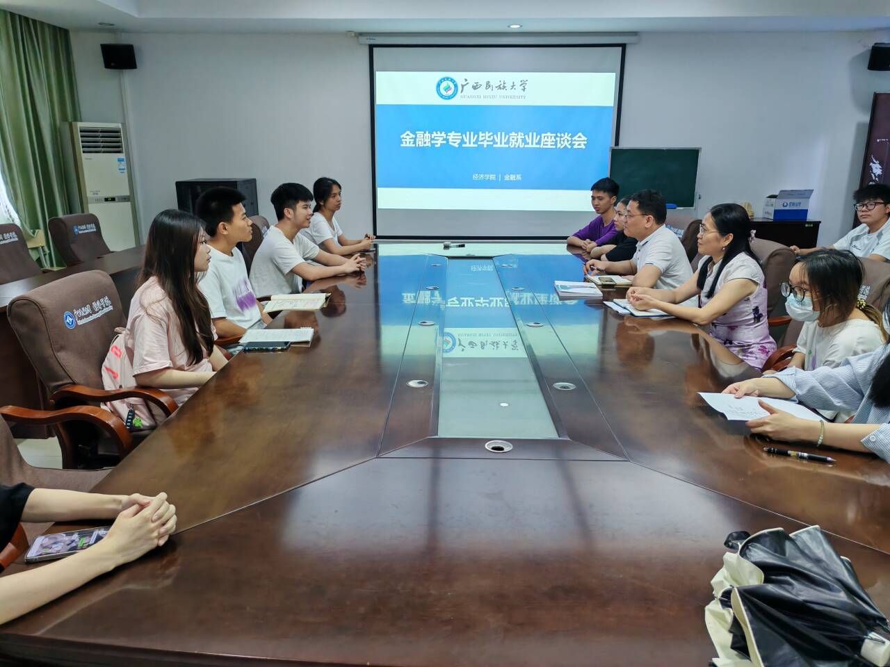 作为金融学专业的“大家长”,她每学期定期组织本科生召开课程反馈会、就业摸底会与职业指导会,精准对接学生需求;毕业实习季,她会亲自赴南宁、桂林等地的实习单位走访,与企业沟通学生表现,与学生聊聊岗位适应情况,帮他们调整职业规划。