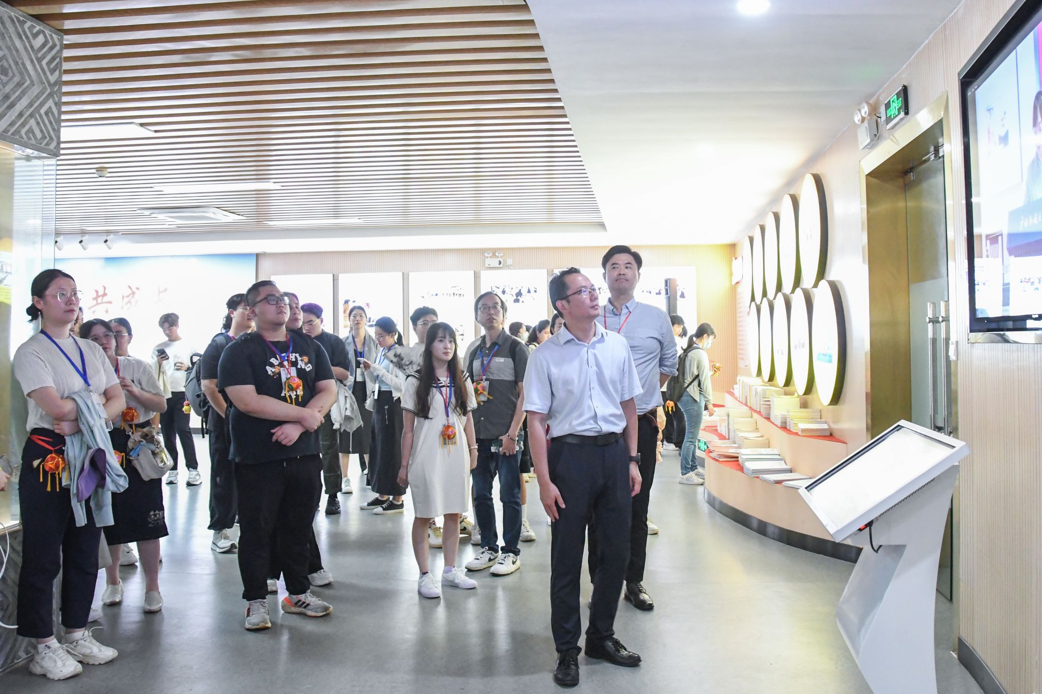 文化研习基地内设校史馆、广西现代文学馆、语言博物馆等多个展馆,展现我校深厚的文化底蕴和办学特色的重要平台。在这里,青少年们了解学校的辉煌历程和丰硕成果、语言的历史发展脉络以及广西民族大学的办学特色和对外交流合作情况。