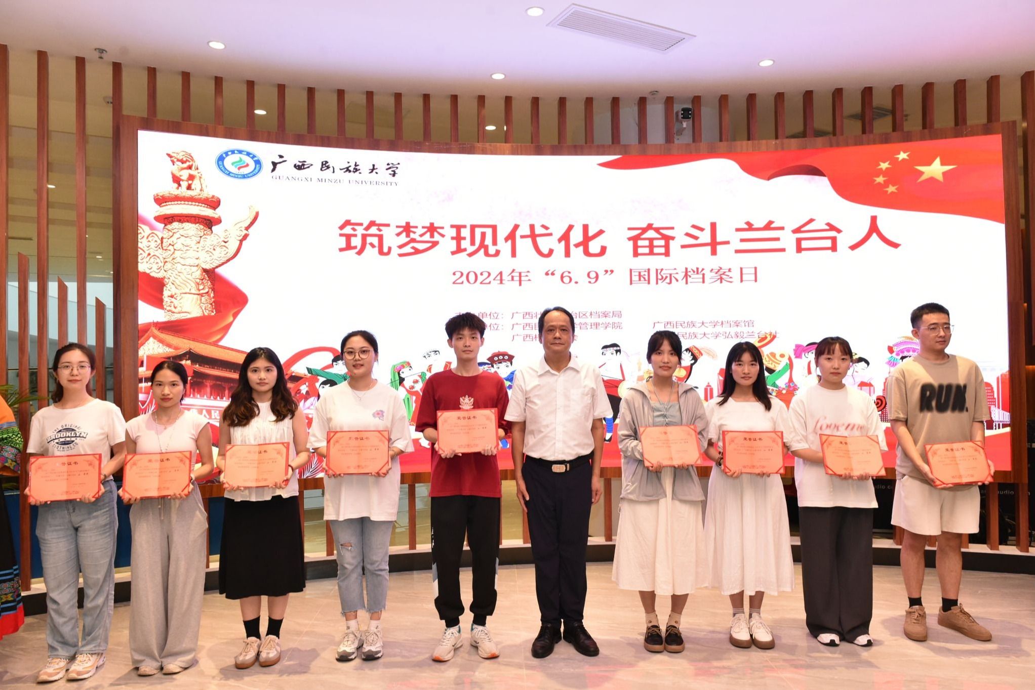 【大学生通讯社报道】6月11日下午,广西民族大学2024年国际档案日宣传活动在相思湖校区文化研习基地举行。自治区党委副秘书长、办公厅副主任,自治区档案局局长甘自强,广西民族大学副校长蔡高根出席活动。自治区党委办公厅档案事业发展和管理处全体人员,管理学院有关负责人、师生代表以及档案馆全体教师参加活动。