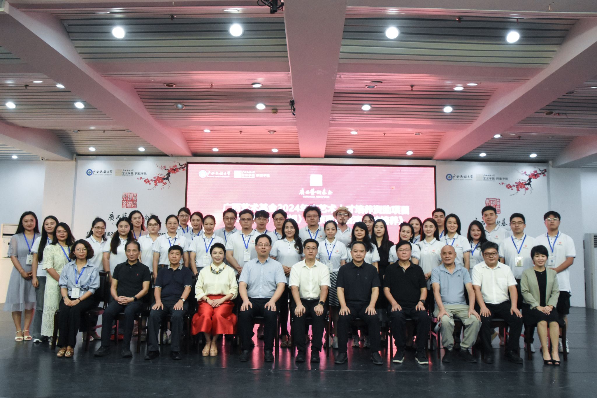 【大学生通讯社报道】9月18日下午,广西艺术基金2024年度艺术人才培养资助项目“红色歌剧《江姐》民族声乐表演人才培养”开班仪式在广西民族大学举行。广西民族大学党委常委、副校长高兴宇,广西艺术创作中心主任傅滔,广西艺术基金中期监督专家朱创伟、黄朝瑞、蔡央,著名词作家、一级编剧杨启舫出席开班仪式。