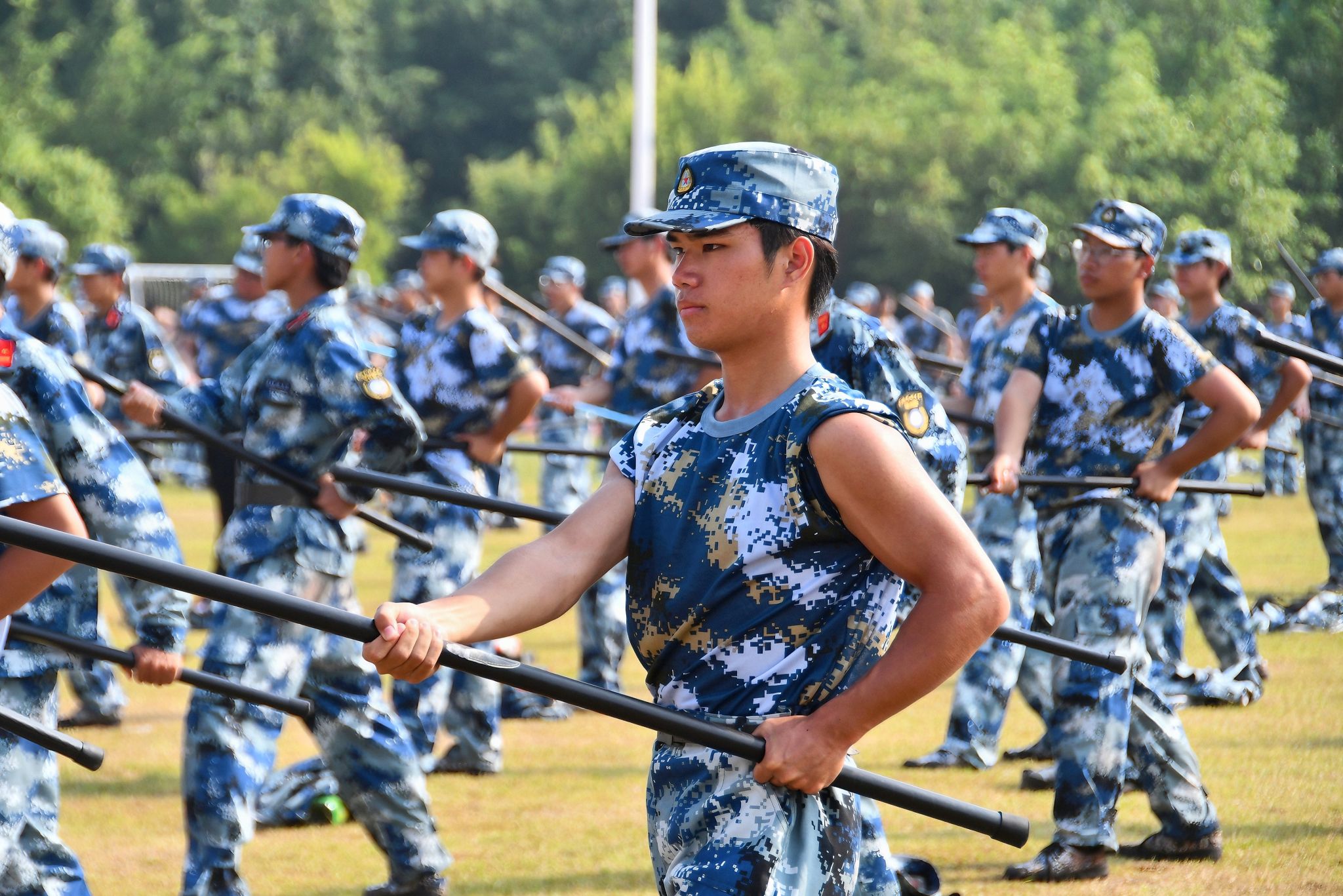 步伐训练,规范有序。他们身姿挺拔如松立,彰显坚毅不屈之品质;动作协调展风采,挥洒青春豪迈之神韵。