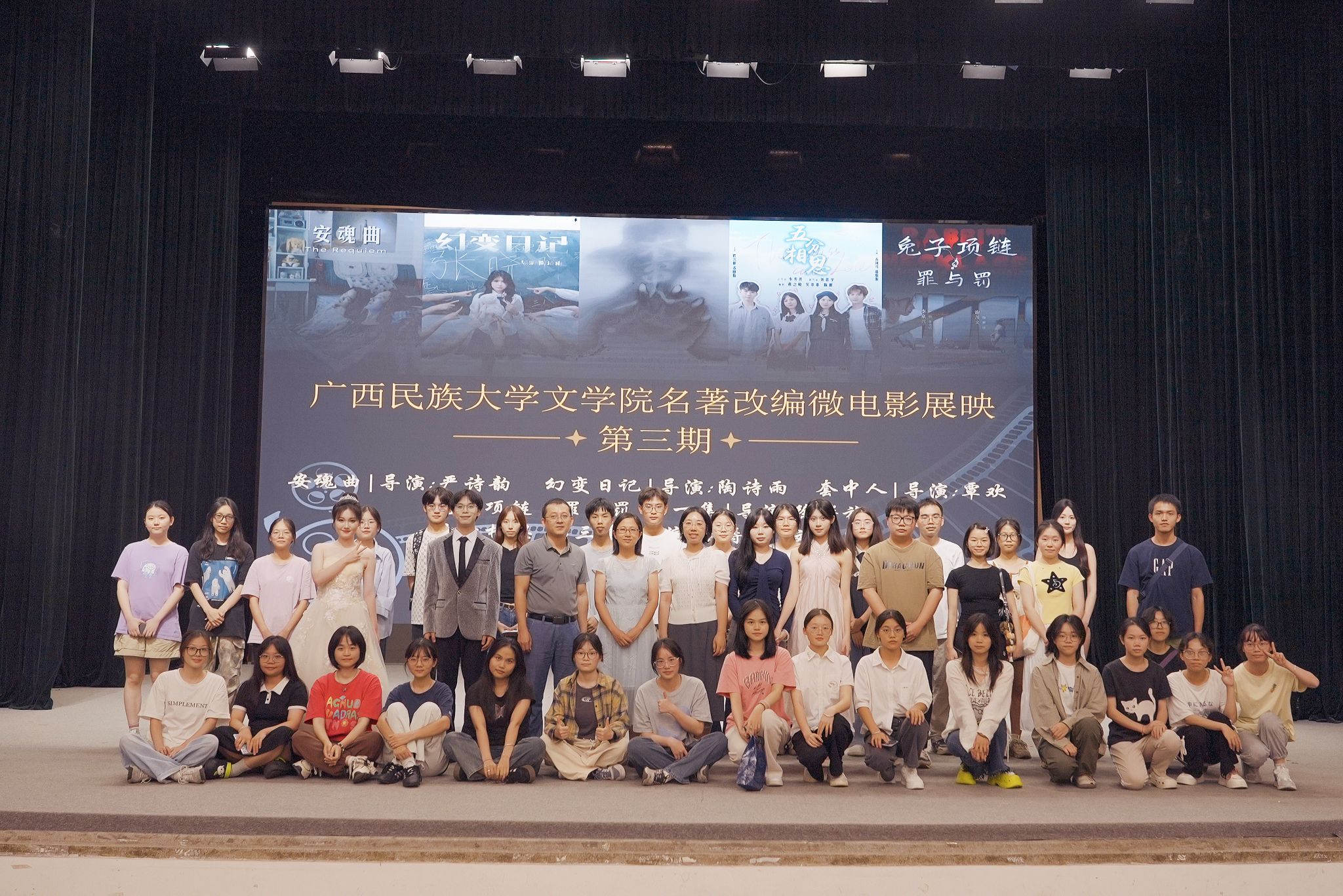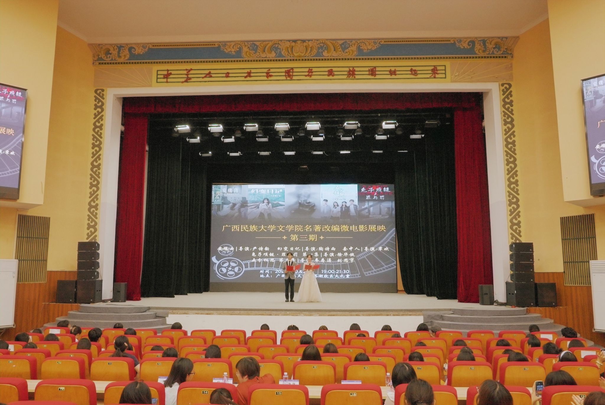 10月20日,广西民族大学文学院名著改编微电影展映第三期活动在相思湖校区礼堂举行。学院党委书记陆晓芹出席活动,文学院外国文学教研室部分教师、各学院学生代表参加活动。