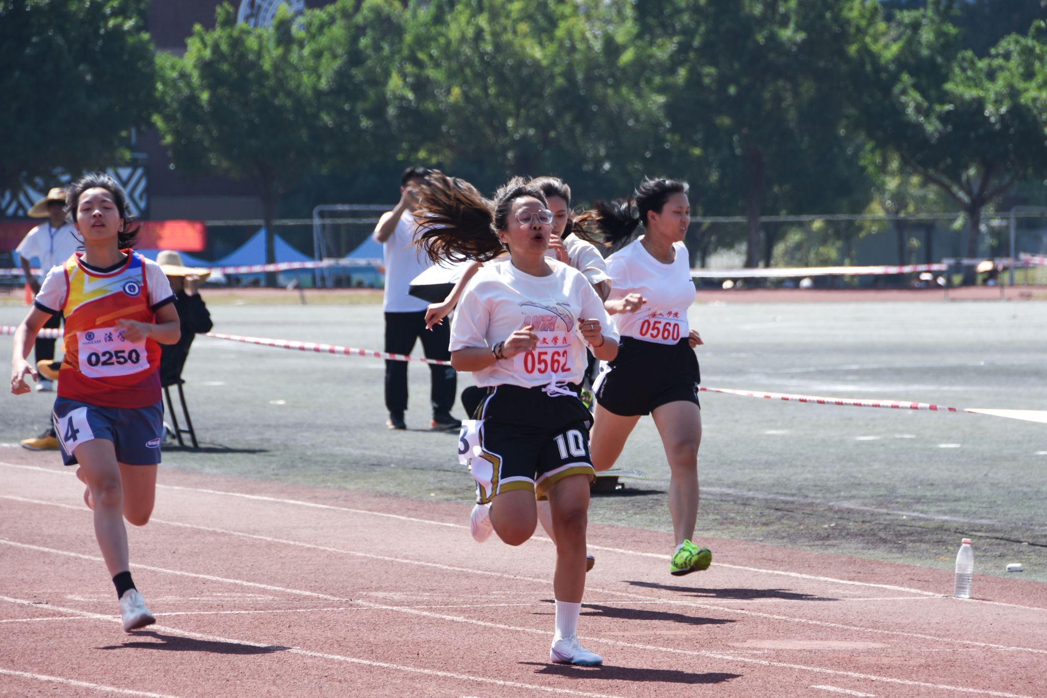 紧接着,女子甲组100米比赛也在观众们的呐喊声拉开序幕。在决赛中,运动员们展现出良好的竞技状态,前半程难分高下,十分胶着。唐宝珠保持稳定的步伐,在后半程加速冲刺,率先冲过终点线,以14.83秒的成绩赢得女子甲组100米比赛的冠军。