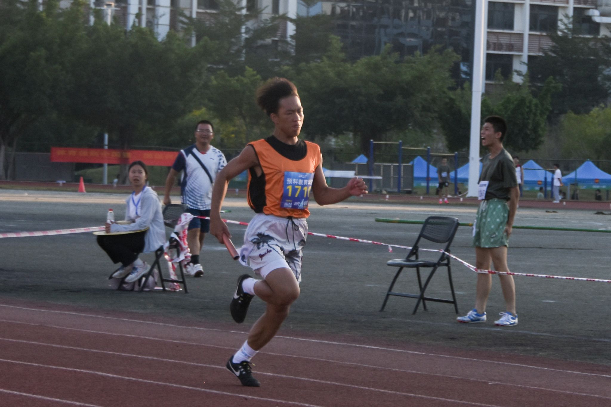 在随后进行的男子甲组4×400米接力赛中,第一圈文学院暂时领跑,预科教育学院位居第二。在第二圈时,预科教育学院运动员降低重心,顺利实现弯道反超,持续加速拉开距离。最后400米,预科教育学院保持领先位置,以3分53秒的成绩领先数学科学学院0.06秒,夺得冠军。(初审:潘之铭 编辑:邓思馨 复审:荣子卿 终审:王文娟)