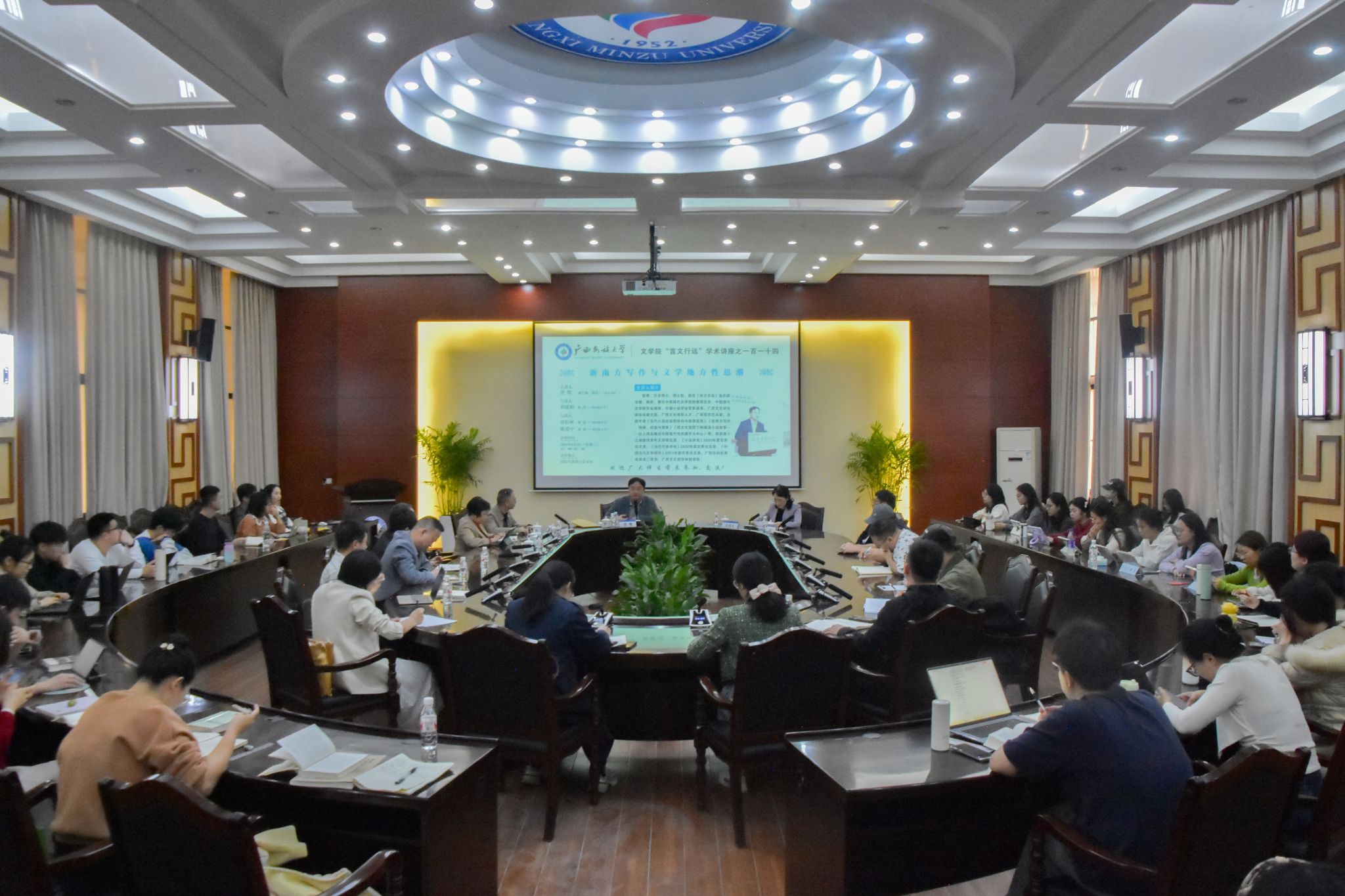 【大学生通讯社报道】4月2日下午,“新南方写作与文学地方性思潮”主题讲座在广西民族大学举行,副校长黄晓娟出席讲座。广西文艺评论家协会副主席、《南方文坛》杂志副主编曾攀主讲,文学院师生代表参加讲座。