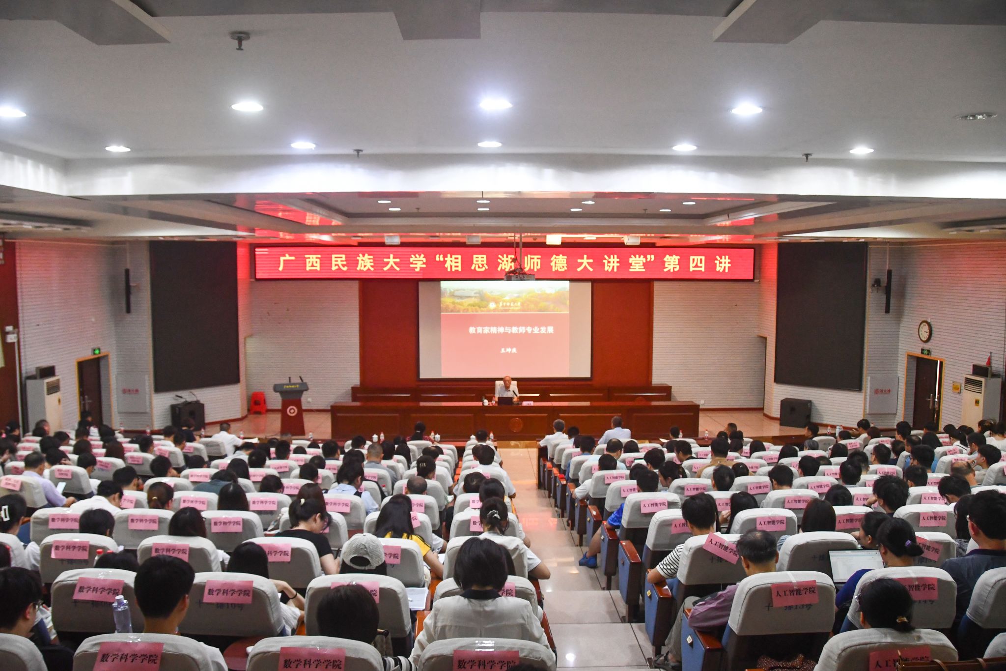 【大学生通讯社报道】6月3日下午,广西民族大学“相思湖师德大讲堂”第四讲在科技楼报告厅开讲。学校党委副书记、纪委书记韦雪芳,副校长吕俊彪出席讲座。华中师范大学教授、博士生导师王坤庆主讲,学校党委教师工作部负责人、相思湖校区部分学院教职工和学生代表参加讲座。