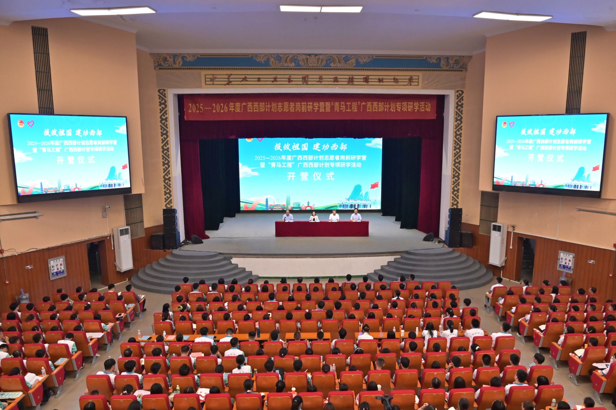 【大学生通讯社报道】7月28日,2025—2026年度广西西部计划志愿者岗前培训营暨“青马工程”广西西部计划专项研学活动开营仪式在广西民族大学举行。校党委副书记陈铭彬,共青团广西区委副书记左向蕾出席开营仪式并讲话。