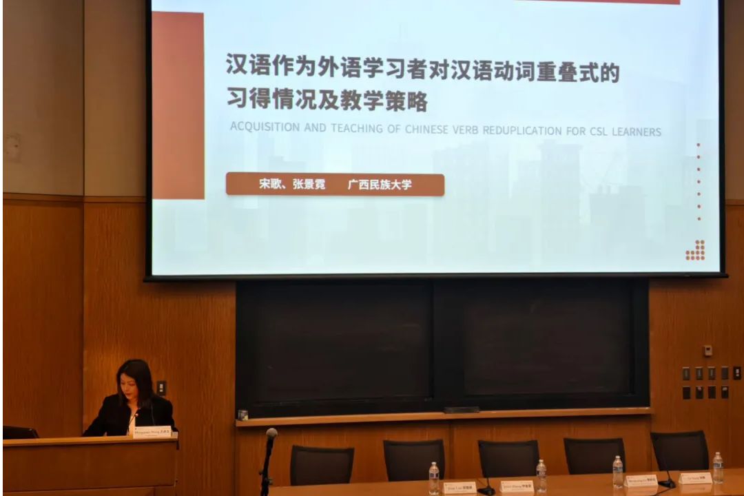 文学院2022级博士研究生宋歌在会上就《汉语作为外语学习者汉语动词重叠式的习得情况及教学策略》作报告。