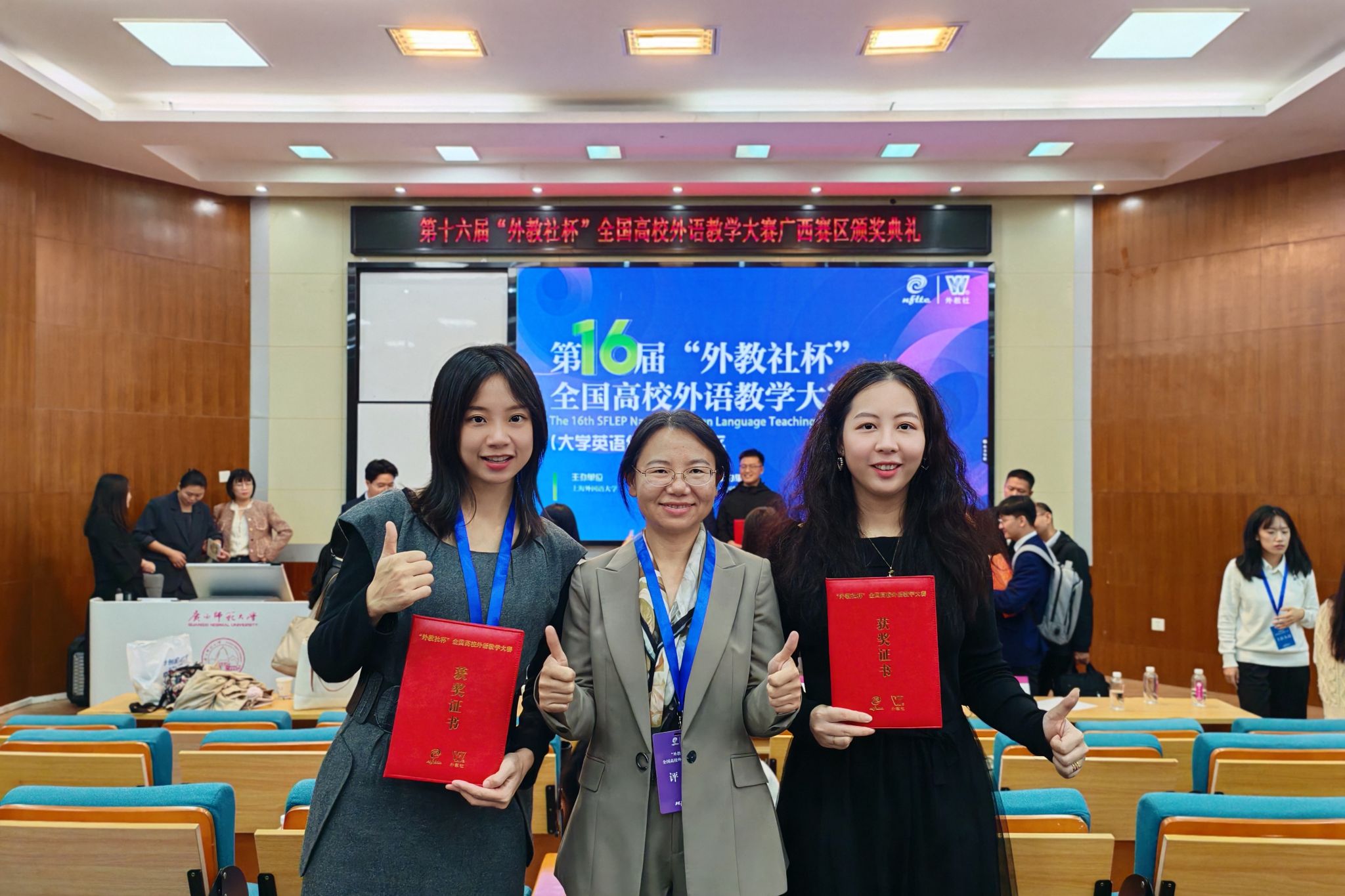 11月8日至9日,第十六届“外教社杯”全国高校外语教学大赛(大学英语组)广西赛区复赛和决赛举行。广西民族大学外国语学院教师陈彦洁、韦晓荞从全区26所高校的52名参赛教师中脱颖而出,分别荣获视听说课组一等奖和综合课组二等奖,刷新学校在该权威赛事中的历史最好成绩。