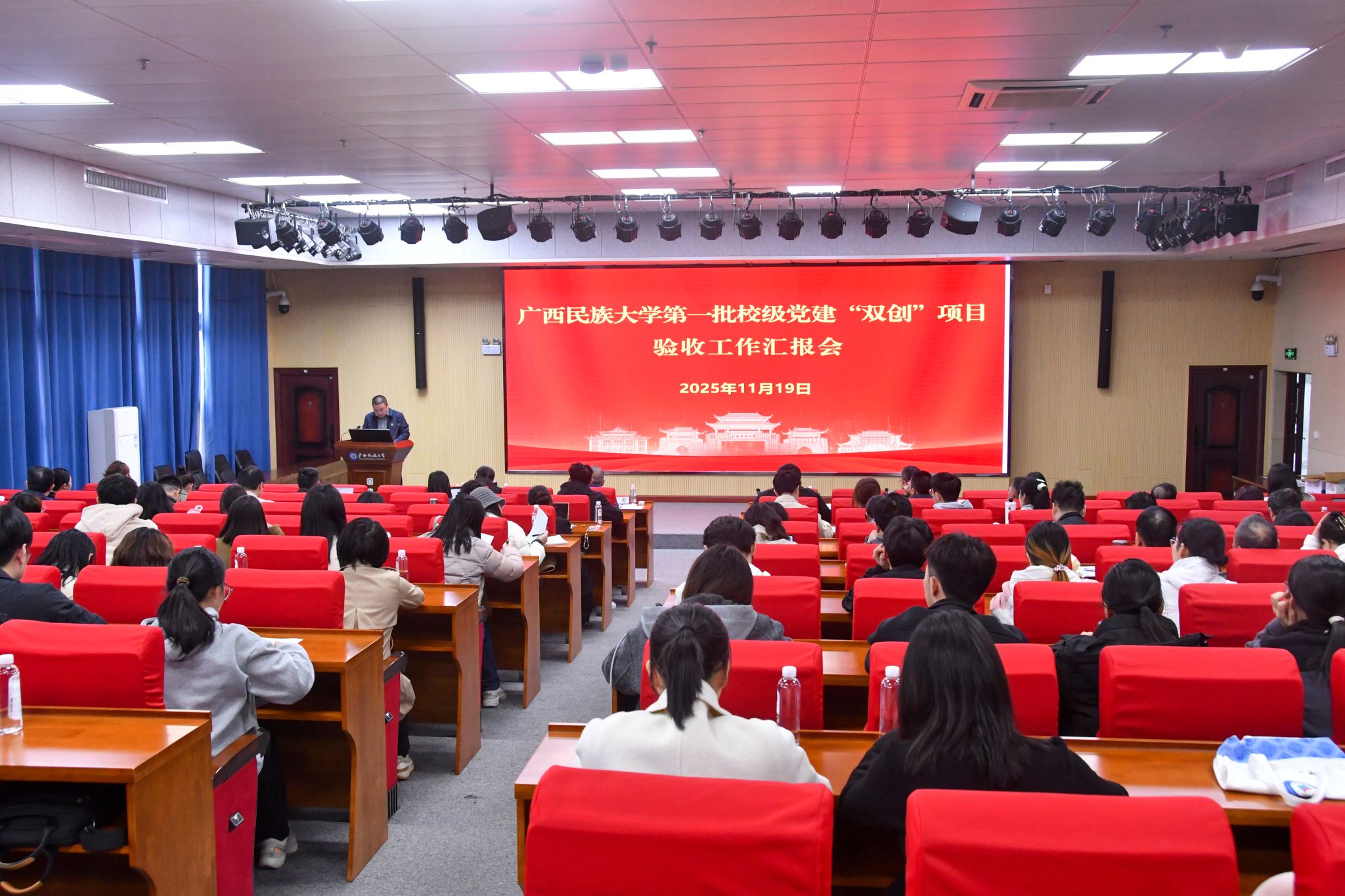 【大学生通讯社报道】11月19日下午,广西民族大学在相思湖校区图书馆1301室举行第一批校级党建“双创”项目现场验收工作汇报会。第一批校级党建“双创”项目培育创建单位主要负责人、各院级党委书记、副书记及部分党支部书记、党员代表参加会议。